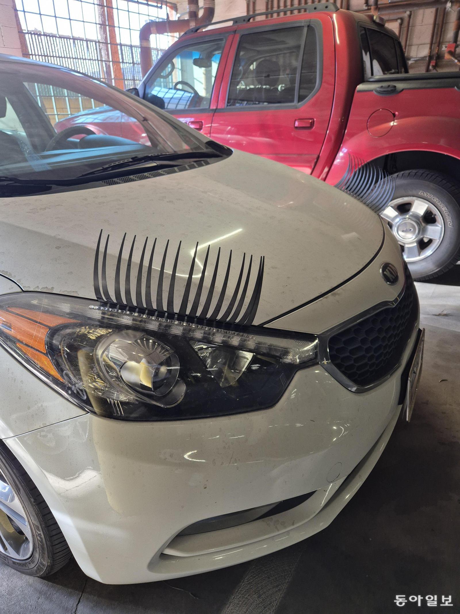 자동차 헤드라이트 위로 풍성한 속눈썹이 붙어 있습니다. 특별히 단장한 모습을 보니 중요한 약속이라도 있는 듯합니다. 오늘은 도시의 주인공 같네요.