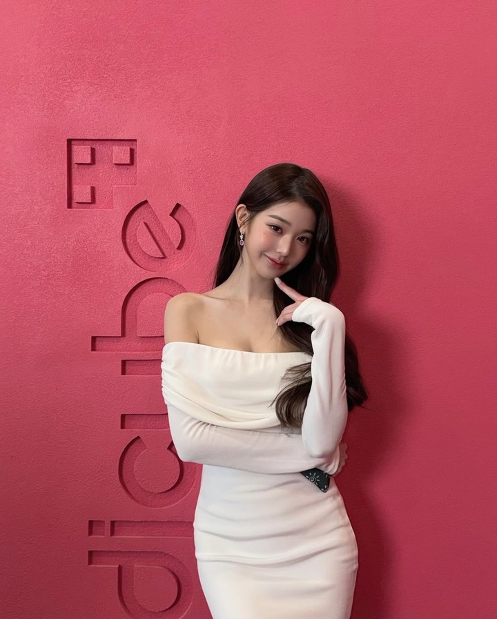아이브 멤버 장원영은 지난 11일 개인 SNS를 통해 여러 장의 사진을 게재했다. 공개된 사진 속 장원영은 오프숄더 디자인의 타이트한 화이트 드레스를 입고, 뷰티 전시 공간에서 포즈를 취하고 있다.
