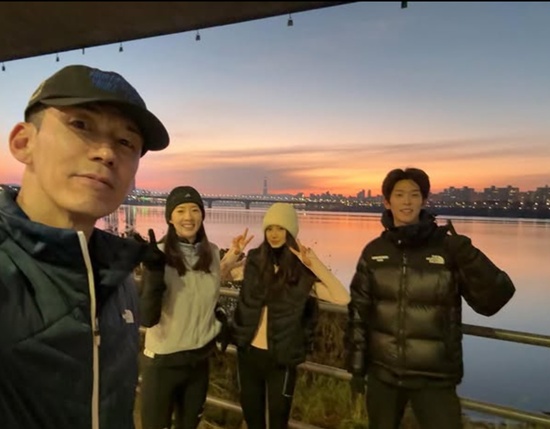공개된 사진에는 션이 이끄는 런닝 크루 멤버들이 새벽에 모여 운동복을 입고 포즈를 취하고 있는 모습이 담겼다. 여기에는 뉴진스 다니엘의 모습도 담겨 눈길을 끈다.