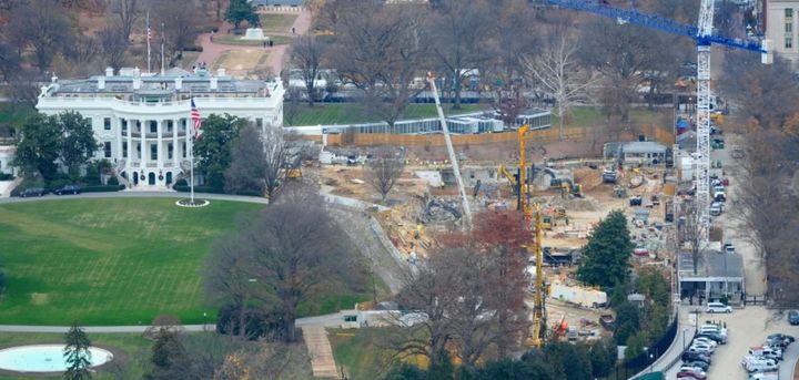[워싱턴=AP/뉴시스] 미국 워싱턴 백악관 동측 연회장 증축 공사장이 파헤쳐져 있다.2025.12.13. *재판매 및 DB 금지 |