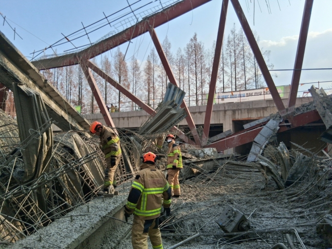 사고 당일 40대 작업자와 70대 작업자는 각각 오후 2시19분과 오후 3시53분에 발견됐으나 숨졌다. 이후 철제 구조물 추가 붕괴 우려로 중단됐던 수색 작업은 13일 재개됐고, 이날 오전 1시3분쯤 세 번째 매몰자가 발견됐으나 이미 사망한 상태였다.