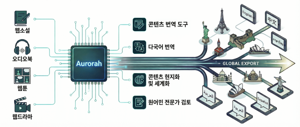 핵심 기술인 ‘오로라’는 평균 100만 자 내외의 장편 웹소설 전체 맥락을 유지하는 독자 기술을 탑재했다. 이를 통해 서사의 흐름과 캐릭터의 어조를 일관되게 처리하여 기존 기계 번역의 한계를 보완했다. 또한 AI가 초벌 번역을 수행하고 전문 번역가가 전용 에디터로 검수하는 협업 프로세스를 구축해 비용 효율성과 번역 품질을 동시에 확보했다.