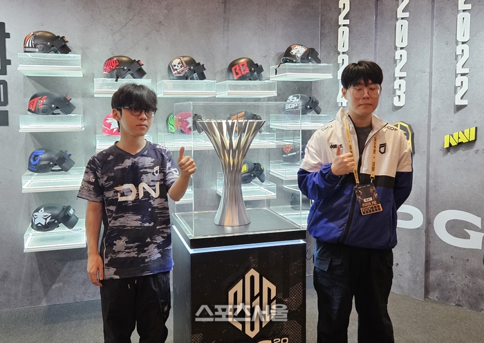 DNF ‘규민’ 심규민(왼쪽)과 ‘플리케’ 김성민 감독이 13일(한국 시간) 태국 방콕 시암 파라곤에서 열린 PGC 2025 그랜드 파이널 2일차 취재진 인터뷰 후 포즈를 취하고 있다. 방콕 | 강윤식 기자 skywalker@sportsseoul.com |