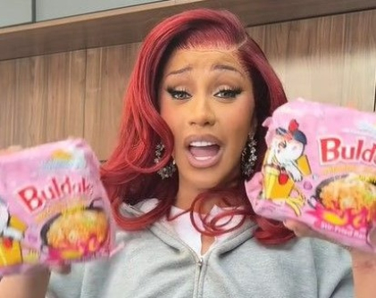 미국의 유명 래퍼 카디비가 틱톡으로 '까르보불닭볶음면'을 먹는 장면을 공개했다. 사진 틱톡 캡처 |
