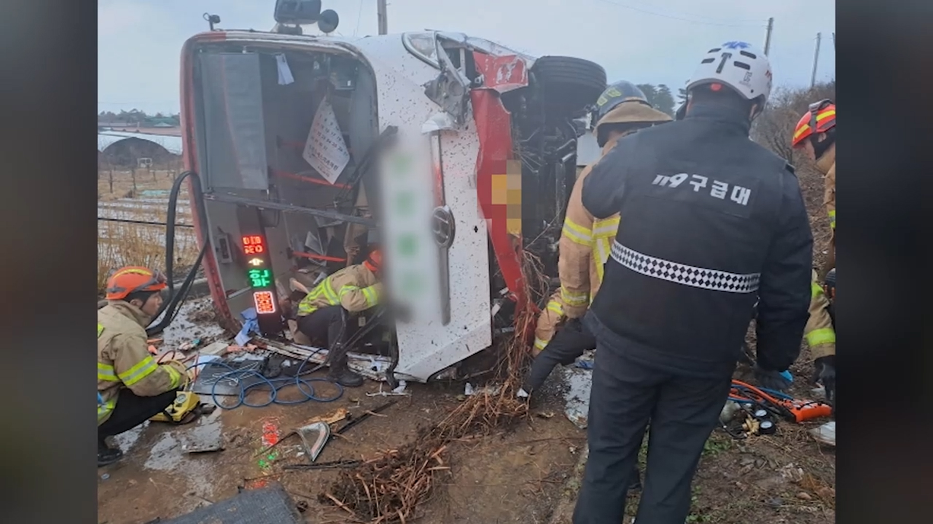 경찰과 소방당국은 부안을 출발해 정읍으로 달리던 시외버스가 빗길에 미끄러진 것으로 추정하고 정확한 사고 원인을 조사하고 있습니다.