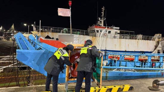 목포해경이 기상악화에 대비해 인명구조함을 점검하고 있다. 목포해경 제공 |