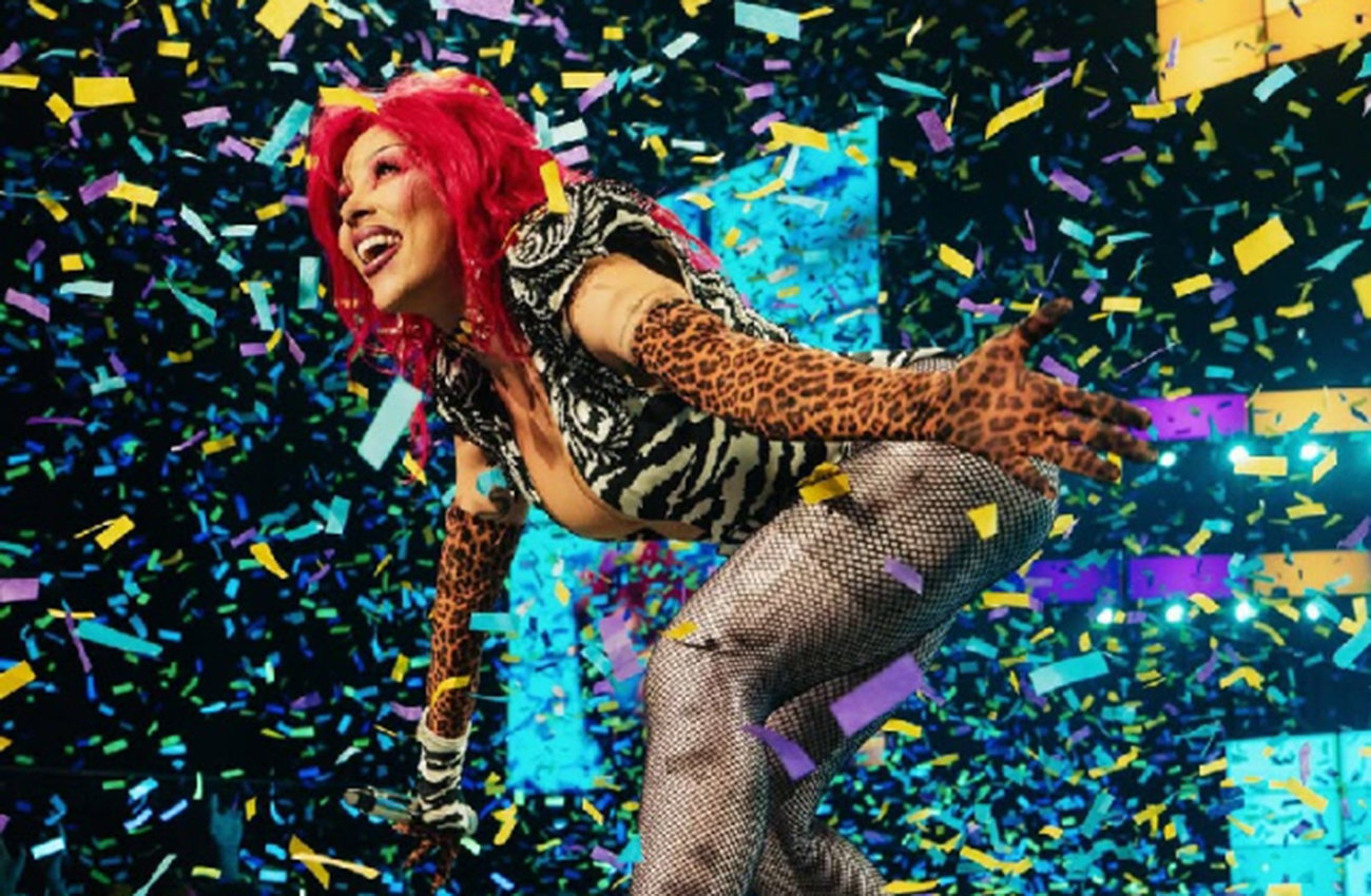 보통 이런 콘서트는 무대의상을 남녀 뮤지션 할 것 없이 서너벌 정도 갈아입는 게 보통. 하지만 도자 캣은 이번 월드투어에선 모두 한 벌로 나서며 온전히 무대에 집중하고 있다. 한국 공연에선 실버 장식이 달린 ‘하의 실종’ 검은색 보디수트에 레트로한 베레모, 초록색 가발을 매치했다.
