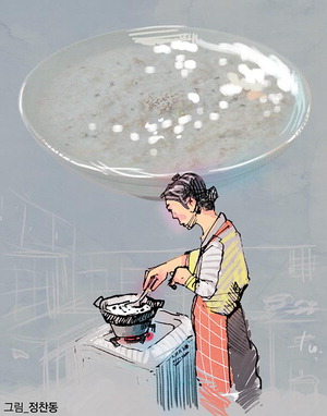 고통 뒤에 만난 흰죽엔 한 점의 불순물도 없어 더 아름답다. 정신의 소화불량에 시달리는 날마다 기억 속 흰죽은 위안이 된다. 흰죽은 우리 모두의 기원이고, 어머니의 흰죽은 사랑의 가장 깊은 형식이다.