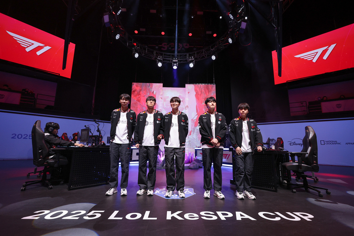 T1은 14일 서울 마포구 상암 SOOP 콜로세움에서 열린 ‘2025 LoL KeSPA컵’ 결승전 1세트에서 한화생명e스포츠를 27분 만에 꺾고 기선 제압에 성공했다. 노련한 운영과 한타 모두 한화생명을 압도했다.
