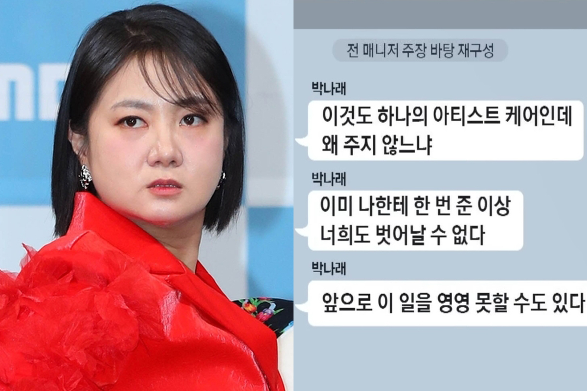 방송인 박나래씨가 전 매니저에게 약 대리 처방을 강요했다는 주장이 담긴 메시지. 뉴시스·채널A 보도화면 캡처 |