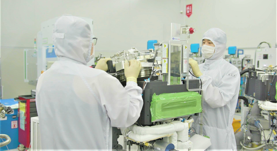 원익IPS 연구원들이 반도체 생산설비를 점검하고 있다. 중앙포토 |