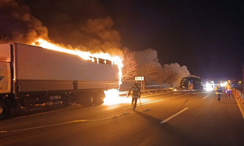 경찰과 소방 당국은 탱크로리 차량 운전자가 화물차 뒤쪽을 추돌하며 사고가 난 것으로 보고 블랙박스와 목격자 진술 등을 토대로 정확한 사고 원인을 조사 중이다.