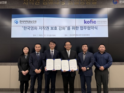 (서울=연합뉴스) 김기훈 기자 = 한국저작권보호원은 지난 12일 영화진흥위원회와 영화 산업의 저작권 보호 강화를 위한 업무협약을 맺었다고 15일 밝혔다.