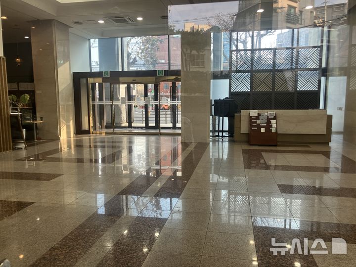 [서울=뉴시스]김경민 인턴기자=경찰청 특별전담수사팀은 15일 오전 9시부터 서울 용산구 통일교 서울본부 등 10곳에 대해 압수수색영장을 집행 중이다. 사진은 통일교 서울본부 로비. 2025.12.15 photo@newsis.com |