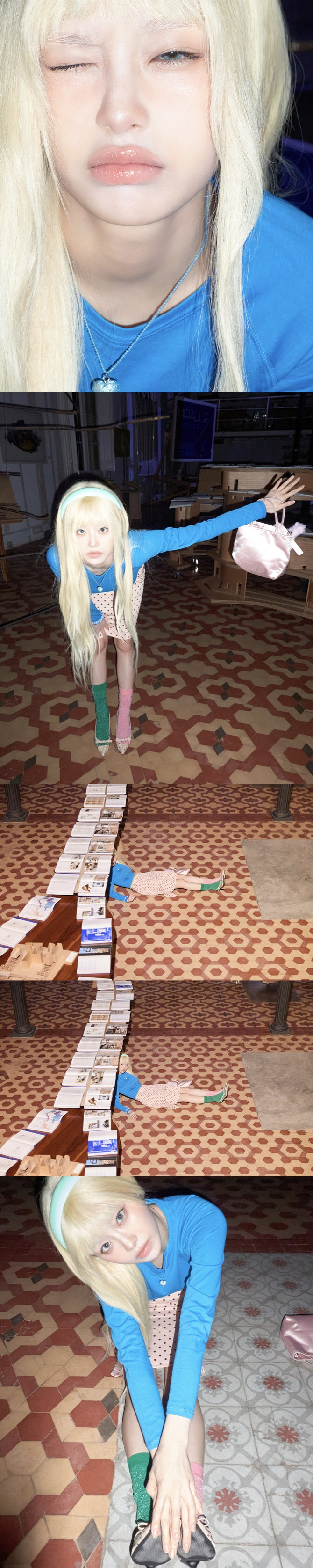 첫 티저 영상에서 츄는 밝은 금발의 긴 생머리와 푸른빛 눈동자로 완전히 새로운 분위기를 자아내며 시선을 사로잡는다. 블루 톤 니트와 블랙 도트 패턴의 핑크 스커트, 컬러가 서로 다른 스타킹을 믹스 매치한 스타일링은 기존 이미지와는 결이 다른 변화를 과감하게 드러낸다.