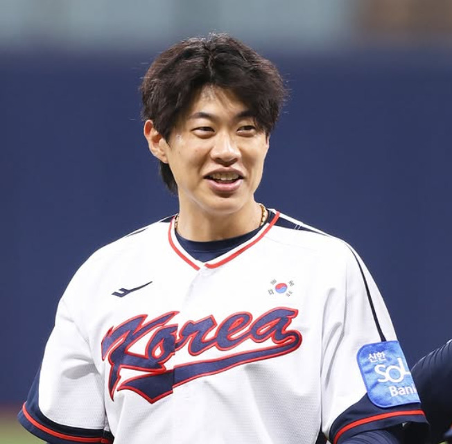 국가대표 유니폼을 입고 있는 키움 3루수 송성문. [사진=KBO] |