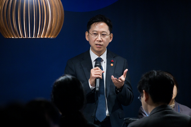 배경훈 부총리 겸 과학기술정보통신부 장관이 15일 정부세종청사 인근에서 진행한 과학기술정보통신부 기자간담회에서 질문에 답변하고 있다./과학기술정보통신부 |