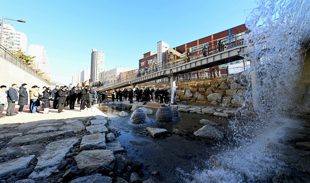 인천시와 부평구는 착공 4년여 만인 오는 17일 준공식을 앞두고, 지난 4일 복원 구간에 하천유지용수를 처음 공급하는 '물맞이 행사'를 개최했다. 1990년대 중반께 복개 구간 하수시설 완료로 물길이 끊긴 지 30년 만에 물이 다시 흐르기 시작한 것이다.