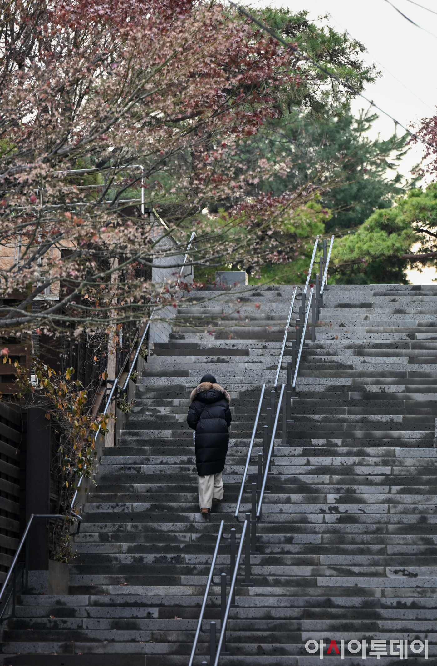 15일 서울 마포구 절두산 순교성지를 찾은 시민들이 새롭게 개통된 하늘계단을 오르고 있다. 마포구는 절두산 순교성지를 찾는 방문객들의 보행 안전과 성지의 역사적·문화적 가치를 높이기 위해 현무암 통석을 활용한 폭 6.7m, 길이 32m 규모의 계단으로 전면 정비하고 계단 일부에 음각 문구를 새겨 성지의 엄숙함과 의미를 담은 보행 환경으로 개선했다. /정재훈 기자