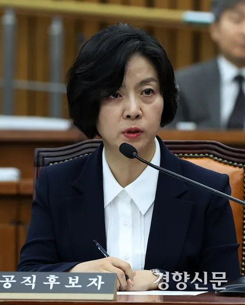 이숙연 당시 대법관 후보자가 지난해 7월25일 국회에서 열린 인사청문회에서 의원 질의에 답변하고 있다. 조태형 기자 |