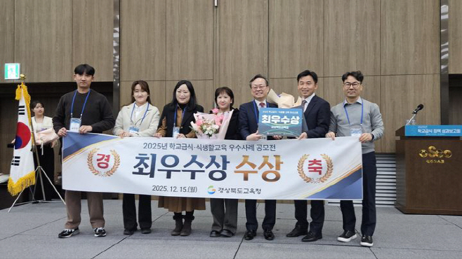 배준성 경북교육청 체육건강과장은 "이번 수상은 학교 현장에서 급식을 단순한 식사 제공을 넘어, 학생들의 관계 형성과 정서적 성장을 지원하는 교육 활동으로 운영해 온 과정이 평가된 결과"라며 "학교 급식이 학생들의 일상에서 안전과 배려, 존중의 가치를 자연스럽게 배우는 시간이 될 수 있도록 현장 중심의 운영과 지원을 이어가겠다"고 말했다.