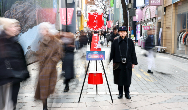 지난 14일 서울 중구 명동거리에서 구세군 자선냄비 봉사자가 모금 활동을 하고 있다. /연합 |