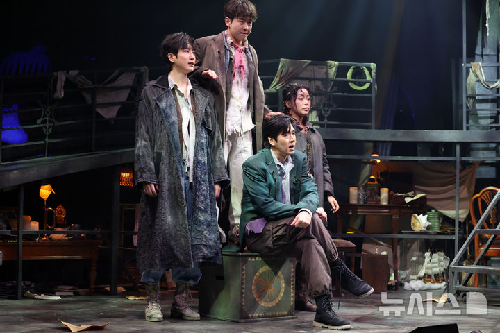 [서울=뉴시스] 박진희 기자 = 뮤지컬 '시지프스' 출연 배우들이 15일 서울 종로구 YES24 스테이지에서 주요 장면을 시연하고 있다. 2025.12.15. pak7130@newsis.com |