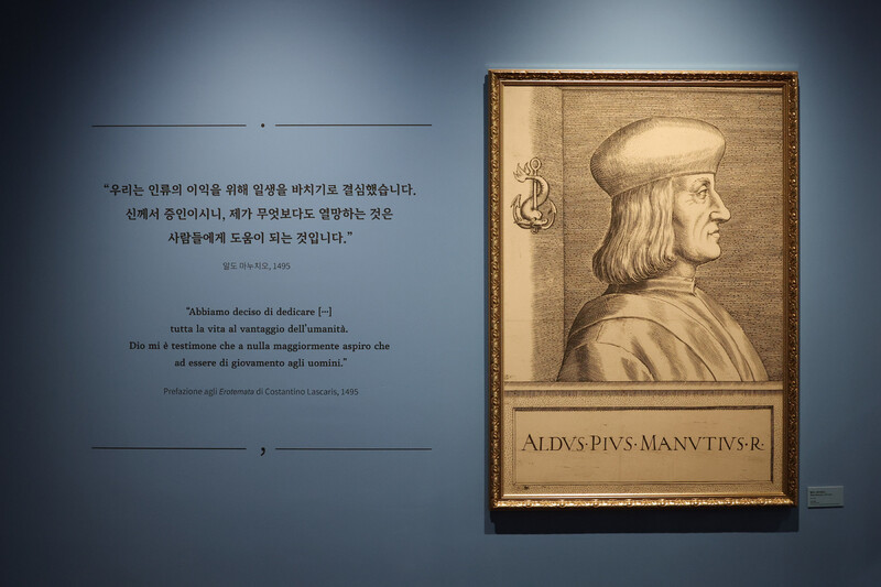 안전한 학자의 길이 아니라 모든 사업적 위험을 감수하고 ‘호기심’이라는 욕망의 전차를 직접 운전하겠다고 나선 사업가의 원형을 눈으로 직접 보고 싶은 사람이 있다면, 다음달 25일까지 인천 송도 국립세계문자박물관에서 열리는 기획특별전 ‘천천히 서둘러라: 알도 마누치오, 세상을 바꾼 위대한 출판인’을 둘러보기를 권한다. 알도가 남긴 삶의 흔적과 문명이 어떻게 전환되는지를 전하는 역사의 기억을 눈으로 직접 확인할 수 있을 것이다.
