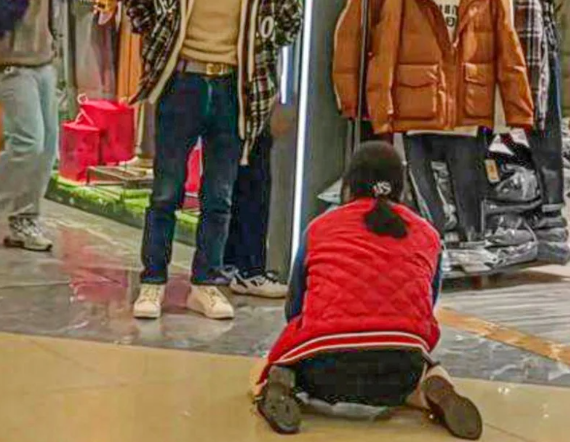 중국의 한 쇼핑센터에서 여성이 무릎을 꿇고 남편으로 추정되는 남성에게 패딩을 사달라고 애원하는 모습이 담긴 영상이 온라인상에서 빠르게 퍼지며 논란이 일고 있다.
