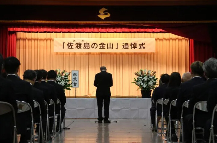 일본 니가타현 사도섬 아이카와개발종합센터에서 지난 9월13일 열린 ‘사도광산 추도식’에서 나카노 고 추도식 실행위원장이 개회사를 하고 있다. 한국은 지난해에 이어 올해도 추도식에 불참했다. 사도섬/연합뉴스 |