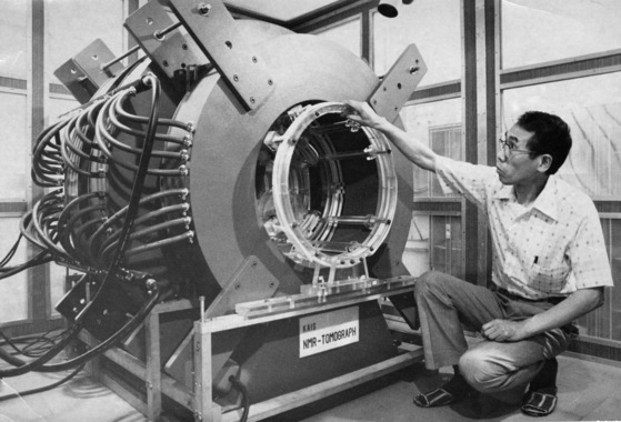조장희 박사가 한국과학기술원(KAIST)에서 MRI(핵자기공명 단층촬영기)를 점검하고 있다. 중앙포토 |