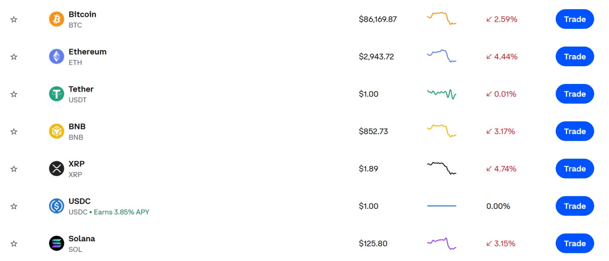 알트코인도 동반 하락했다. 같은 시각 이더리움은 2943달러, 리플(XRP)은 1.89달러, 솔라나는 125.8달러, 바이낸스코인(BNB) 852.7달러까지 밀렸다. 비트코인 약세 여파로 시가총액 상위 코인 상당수가 2~5%대 하락률을 기록했다.