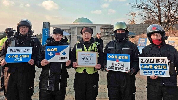 전국 배달협력사 바른정책 실천을 위한 대표모임은 성명을 통해 "수수료가 낮아지면 배달 기본단가와 거리할증이 함께 하락할 수밖에 없다"며 "수수료 상한제는 라이더에게 손해를 떠넘기는 구조"라고 반발했다.