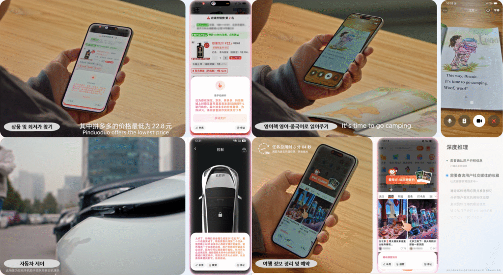 특히 주목받는 기능은 AI가 사용자를 대신해 스마트폰을 직접 조작하는 능력이다. "전체 플랫폼에서 가장 저렴한 동일 샴푸를 찾아 구매해 줘"라고 명령하면, 또우빠오는 앱을 자동 실행하고 상품 검색, 리뷰 필터링, 가격 비교를 사용자 대신 진행한다. 이 과정은 주 화면을 정상적으로 사용하면서 백그라운드에서 진행되며, 결제 같은 민감한 단계에서만 사용자에게 수동 처리를 요청한다.