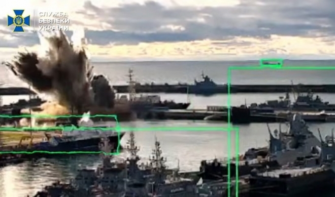 SBU는 공격으로 이 잠수함이 심각하게 손상을 입어 사실상 가동이 불가능한 상태라고 말했다. 또 러시아 군함이 여러 척 정박된 가운데 한쪽에서 거대한 폭발이 일어나는 모습을 찍은 영상도 함께 올렸다.