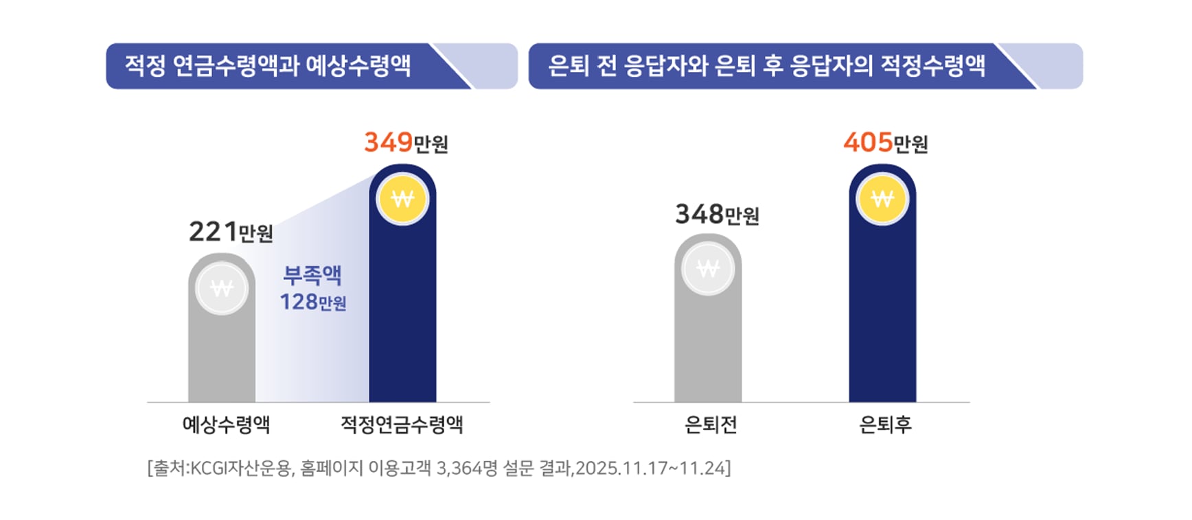 KCGI자산운용이 홈페이지 이용 고객 3364명을 대상으로 실시한 정기 연금 설문조사 결과에 따르면, 응답자의 78%가 “노후 준비가 부족하다”고 답했다. 이는 전년 대비 10%포인트 늘어난 규모다.