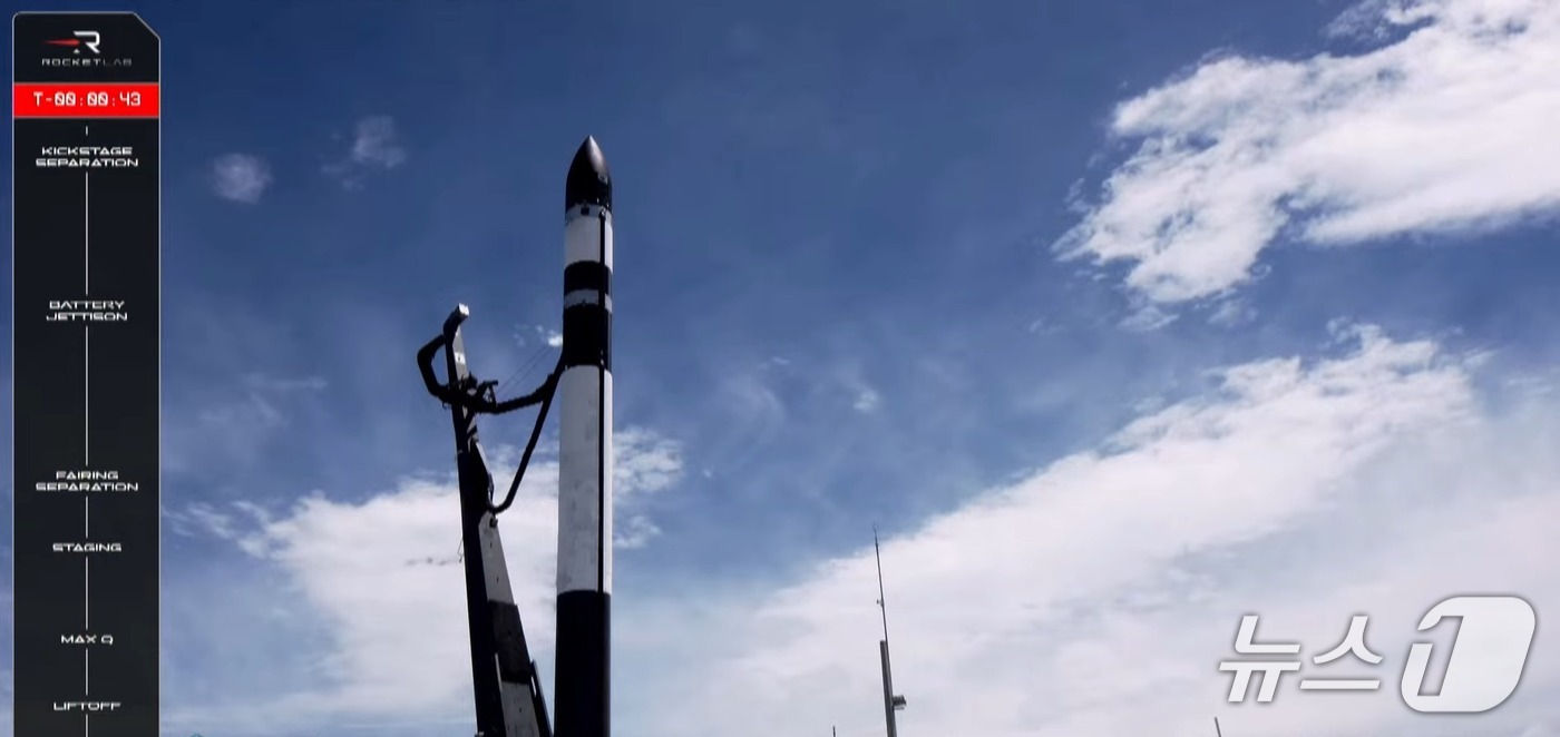 16일 오전(한국시간) 한반도 군집 관측용 위성 '네온샛'의 검증위성을 실은 미국 로켓랩 사의 일렉트론 로켓이 뉴질랜드 마히아 발사장에서 발사를 앞두고 있다.(우주항공청 유튜브 생중계 갈무리)/뉴스1 |