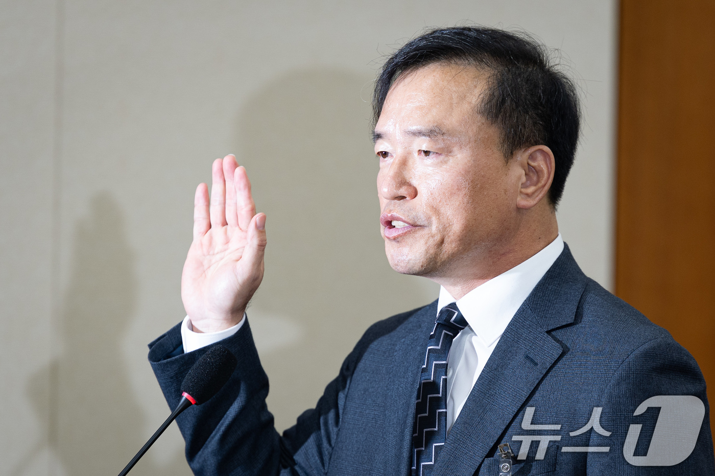 김종철 방송미디어통신위원회 위원장 후보자가 16일 서울 여의도 국회에서 열린 인사청문회에 출석해 선서하고 있다. 2025.12.16/뉴스1 ⓒ News1 유승관 기자 |