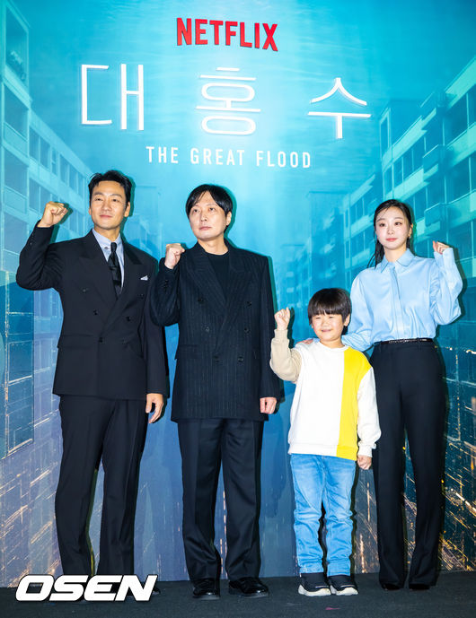 [OSEN=박준형 기자] 16일 서울 용산아이파크몰 내 용산 CGV에서 넷플릭스 영화 '대홍수' 제작보고회가 진행됐다.