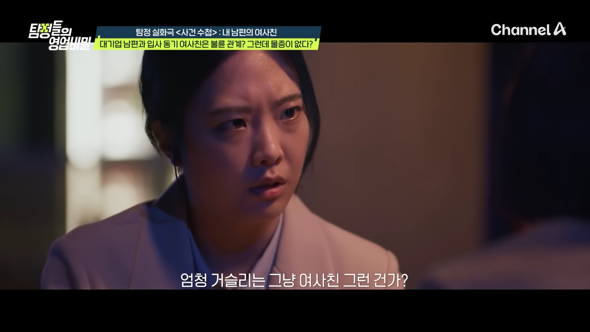 지난 15일 방송된 채널A 예능 프로그램 ‘탐정들의 영업비밀’의 코너 ‘사건 수첩’에서는 남편이 입사 동기 여성과 짜고 유부녀인 직장 상사와 오랜 기간 불륜 관계를 이어왔다는 사연이 소개했다.