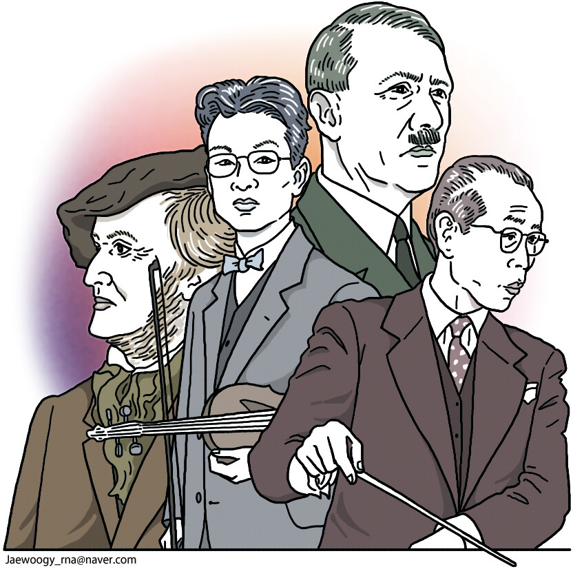 히틀러는 오페라 ‘로엔그린’을 보고 단번에 빠져들었다. 불과 12살, 바그너 숭배의 시작이었다. 훗날 바그너를 프리드리히 대제에 견주며 ‘독일 국민을 이끈 위대한 영웅’으로 떠받들었다. 나치에게도 바그너 음악은 단순한 배경음악이 아니었다. 중요 행사 때마다 웅장한 바그너 선율을 틀어 선동 도구로 활용했다. 히틀러는 오페라 ‘트리스탄과 이졸데’를 바그너 음악의 최고봉으로 꼽았는데, 정작 이 걸작이 바그너가 후원자의 아내 마틸데 베젠동크와 나눈 ‘금지된 사랑’에서 비롯됐다는 점은 역설적이다.