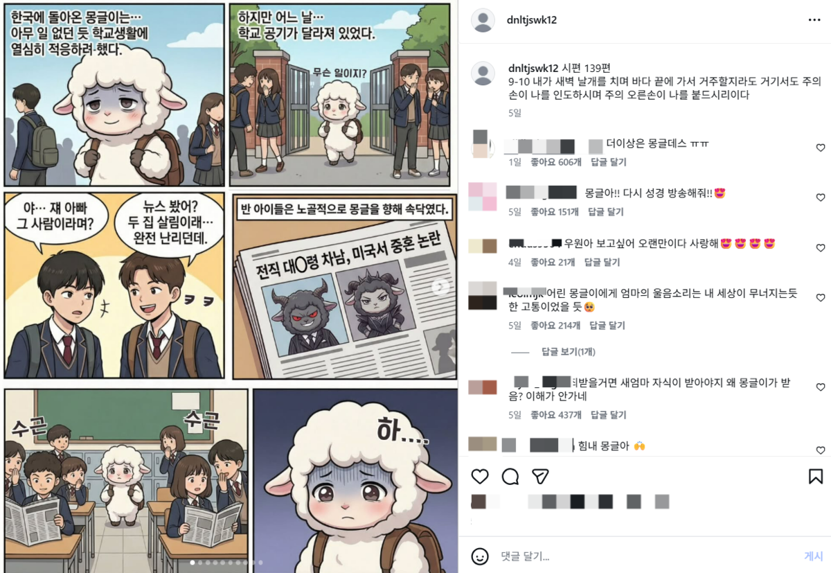양 캐릭터에 빗댄 AI 웹툰 11편 공개