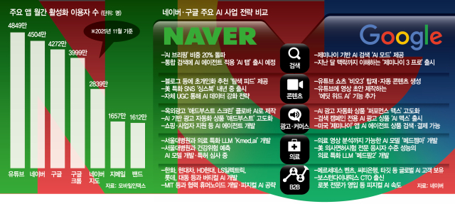 아울러 안방에서 20년 넘게 축적한 데이터를 AI 시대 기업의 핵심 자산으로 최대한 활용하겠다는 전략도 수립했다. 블로그와 카페 등에서 생성되는 한국어 기반의 콘텐츠 데이터와 쇼핑과 결제 등 상업 데이터를 결합해 한국 시장에 최적화된 AI를 개발하겠다는 것이다. 무엇보다 네이버는 한국 특화 AI 개발에 집중하고 있다. 현재 한화·현대차·HD현대·LS일렉트릭·롯데·대동 등 국내 주요 기업들과 버티컬 AI를 개발하고 있다. 최근에는 서울대병원과 협업해 의료 특화 LLM인 ‘Kmed.ai’를 내놓기도 했다. 구글이 접근하기 어려운 한국 산업 특화 AI 경쟁력을 강화해 AI 영토 전쟁에서도 승리하겠다는 전략이다.