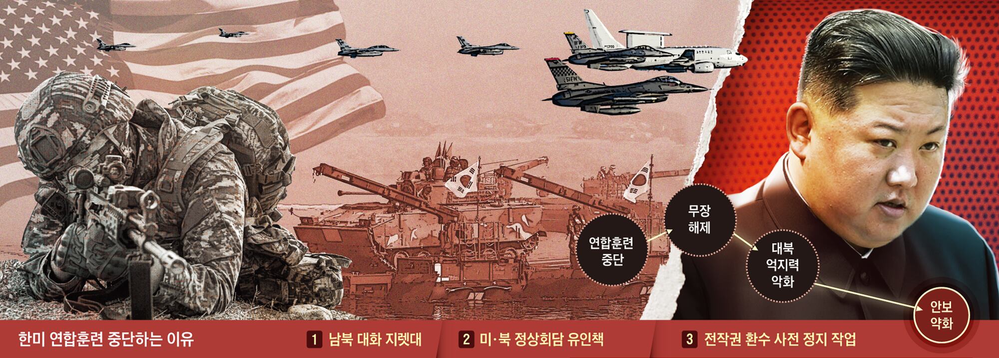 여기까지는 내년 상반기까지 동북아 국제정치 예고편이다. 문제는 우리 안보의 보루인 한미 연합훈련이 중단되는 시나리오다.