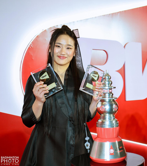 세계배드민턴연맹 올해의 여자선수상을 수상한 안세영은 시즌 왕중왕전 우승에 도전한다. [사진 대한배드민턴협회 SNS] |