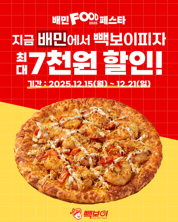 더본코리아의 피자 포장·배달 전문 브랜드 빽보이피자가 오는 21일까지 일주일간 배달의민족이 진행하는 '배민푸드페스타'에 참여해 최대 7000원 할인 혜택을 제공한다.