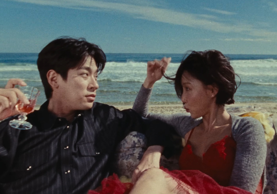 가요 차트 상위권을 차지한 주역들. ‘굿 굿바이’ 뮤직비디오에 출연한 배우 박정민(왼쪽부터)과 화사. [사진 유튜브 캡처] |