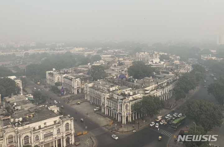 [뉴델리=AP/뉴시스] 지난 2022년 11월4일(현지시간) 인도 뉴델리 시내 상공에 스모그와 짙은 안개가 끼어 있다. 인도 당국은 급격하게 나빠진 뉴델리의 대기질 개선을 위해 오염산업과 건설 활동을 중단하고 디젤 차량의 운행을 제한했으며 스프링클러와 공기 중으로 미세한 물방울을 대량으로 뿜어내는 '안티 스모그 건'을 배치했다. 2022.11.04. |
