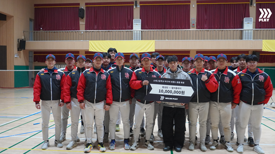 황성빈은 지난 11일 모교인 소래고등학교를 방문해 윌비플레이와 1000만원 상당의 야구용품을 전달했다.