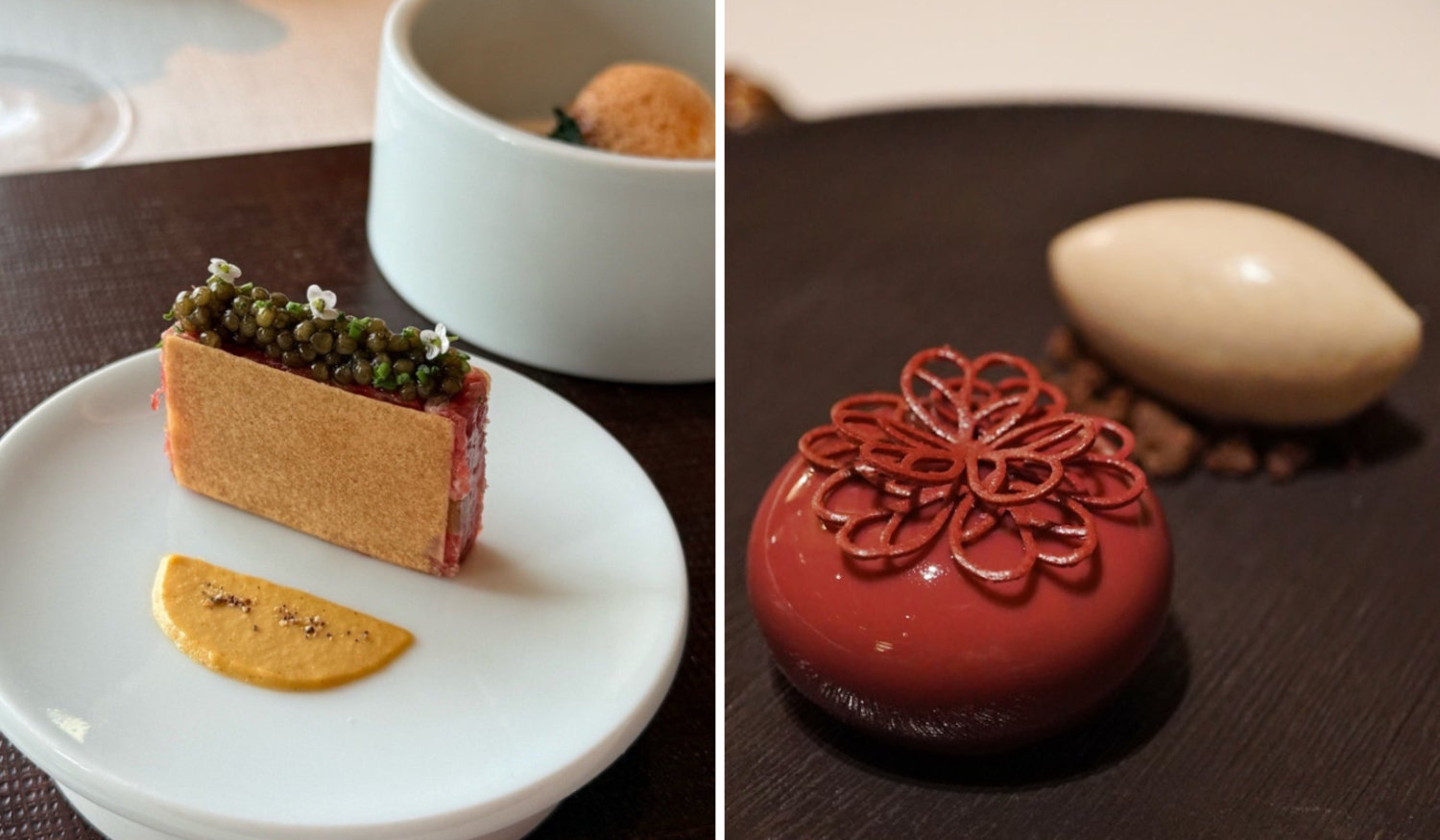레스토랑이나 바를 평가할 때 ‘음식의 맛과 완성도’도 중요하지만 손님이 그 공간에서 어떤 감정과 기억을 가져갈 수 있는지도 중요하다. 신라호텔 ‘라연’의 웰컴 푸드(왼쪽 사진). 파인다이닝 레스토랑 ‘수묵당’에서 생일을 맞이한 고객에게 제공하는 생일 디저트. 사진 제공 김유경 푸드디렉터 |